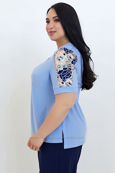 Блуза полуприлегающего силуэта выполнена из ткани - трикотаж масло. Растяжимость ткани средняя. По полке, спинке и рукавам выполнены фигурные вставки из гипюра. Предполагает вариативность выбора низа и аксессуаров. Модель займет почетное место в повседневном гардеробе каждой женщины.