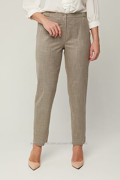 Брюки Сима из льняной ткани. Растяжимость ткани низкая. Классический строгий покрой гармонирует с приталенными блузками навыпуск или свободными, если заправить ее внутрь. Застежкой служит небольшая молния и пуговица, расположенная на вшивном поясе. Растяжимость резинки до 5-6 см.