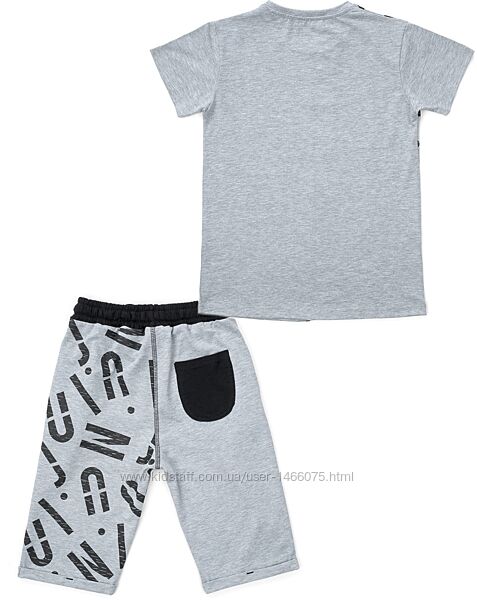 Стильный трикотажный летний комплект для мальчика.Замечательный стильный меланжевый комплект серого цвета, из дышащего хлопкового турецкого трикотажа: футболка и шорты-бермуды.