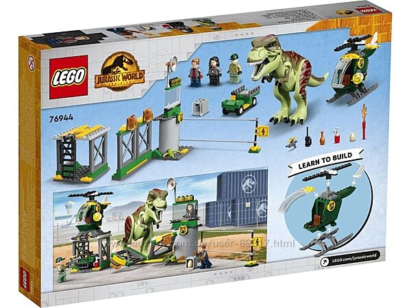 Малышам,которые любят динозавров и крутую технику, понравится учиться собирать модели сигровым набором «Побег тираннозавра» LEGO® Jurassic World (76944) длядетей от 4 лет. В нём есть аэропорт с вертолётной площадкой, гараж, вертолёт,