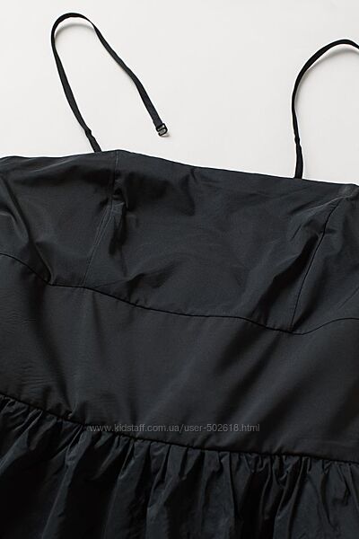 Короткое платье из шелестящей ткани. Прямой крой сверху с узкими съемными бретелями, потайная силиконовая отделка сверху и потайная застежка на молнию и крючок с одной стороны. Сборка и пришитый бант сзади, присборенный шов на талии для дополнительной ширины и мягкой драпировки, а также карманы в боковых швах. Частично на подкладке.Полиэстер 100%