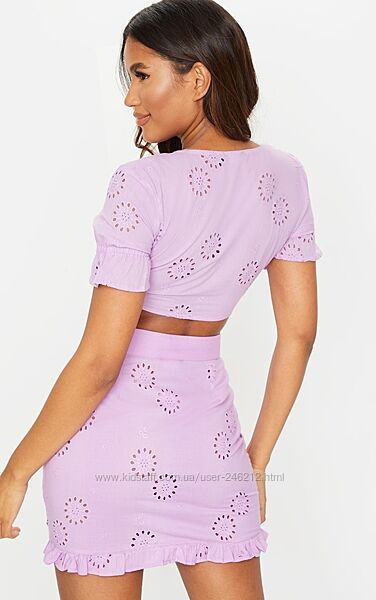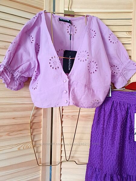Подробное описание: Sale лавандовый кроп топ pretty little thing с вышивкой р. m/l
