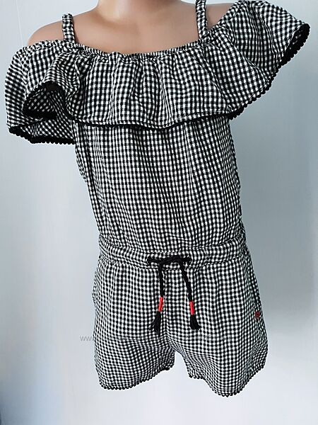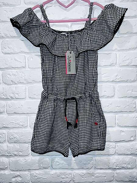 Продам новый ромпер для модницы дорогой бренд,покупала за 35€ цена на бирке указана, есть пакет бумажный из магазина и есть чек, покупала в Испании 2019 году, цена на тот моментне успели одеть.Рост на бирке указан 128см , ткань состав указан вискоза, очень мягкая ткань и приятная к детскому телу .Длина от плеча-62,5см