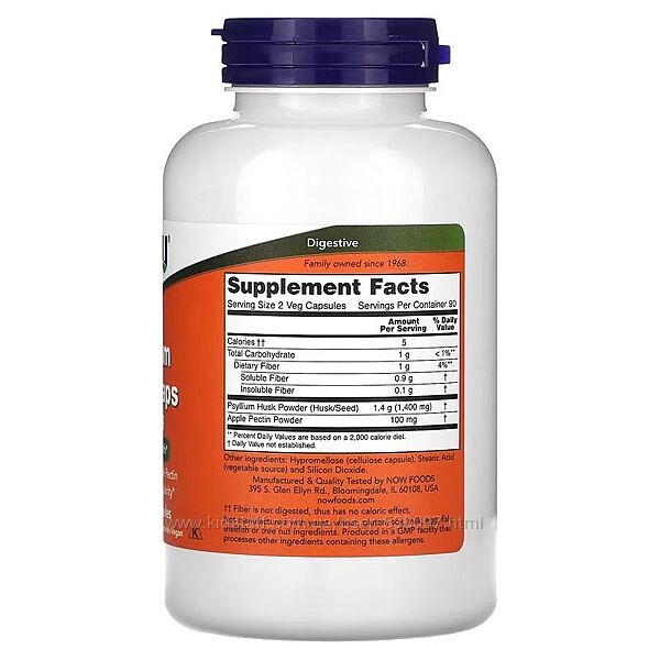 🌞 🍀 Now Foods Шелуха семян подорожника в капсулах 🌞 🍀700 мг, 180 вегетарианских капсул.