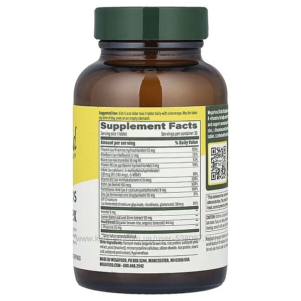 Подробное описание: MegaFood Комплекс витаминов группы B для детей. 30 таблеток