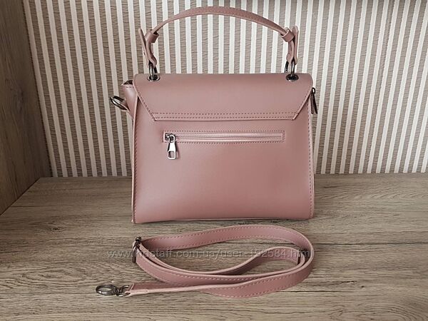 Сумка універсальної моделі та форми, підійде під будь-який образ та стиль. Розміри: Довжина 28см, висота 22см,ширина по дну 11см, ширина збоку 12см. В комплект входить довга ручка. Модель зручна і тим ,що має безліч карманчиків, всередині два відділи, відділи розділяє карман на молнії, є два накладних кармашка, та карман на молнії. З задньої сторони сумки також є карман на молнії.