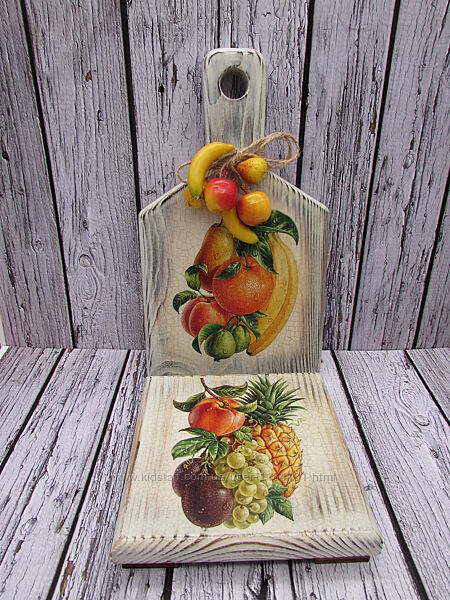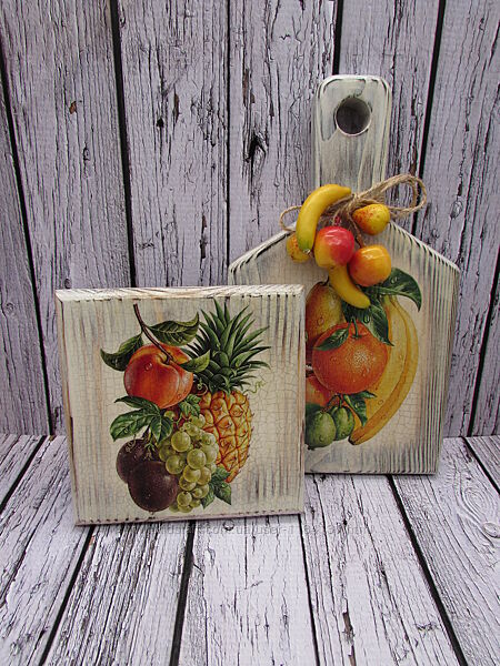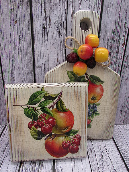 Набір для кухні: дошка для подачі та нарізки,підставка під гаряче.Набір виконаний у техніці декупажу.