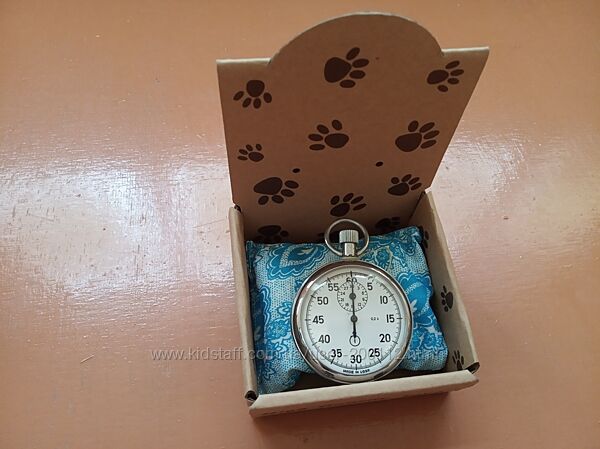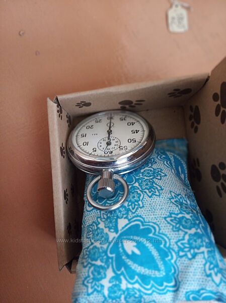 Додається не рідна не нова пласмасова коробка з написом Чайка для зберігання секундоміра, хоча на самому секундомірі марка не вказана.
