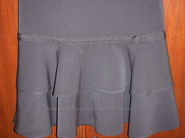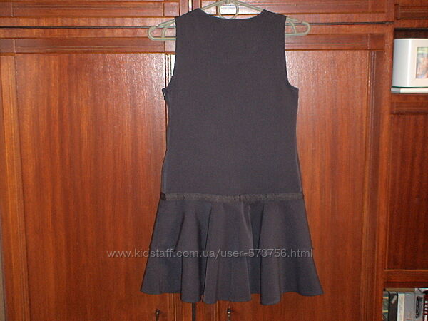 Очень красивый и качественный сарафан, цвет- темно синий. Состав ( 20% - вискоза, 76%- полиестер, 4% - эластан), ткань - мягкая, не закатывается, не блестит, очень элегантно смотрится воланы, с боку молния ( очень удобный, легко снимается, важно для переодеваний на физкультуру). Длина по спинке - 71см., ширина между проймами - 35см. Состояние отличное ( без дефектов).Есть две отличные белоснежные блузочки GORDGE в школу с коротким рукавом, 120грн. одна.