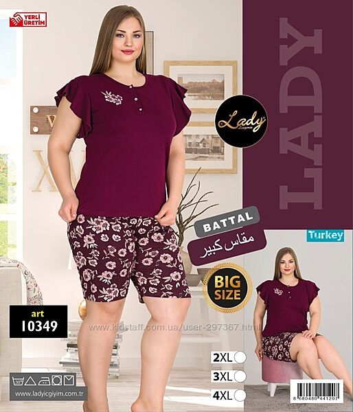 Подробное описание: Піжама батал - домашній комплект із шортами Туреччина Lady