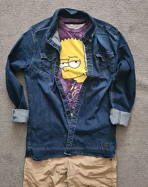 Джинсова рубашка в чудовому стані. Джинс доволі плотний, проте еластичний. Склад тканини 98,5% бавовни, 1,5% спандексу.Рубашка носилась у якості джинсової куртки.