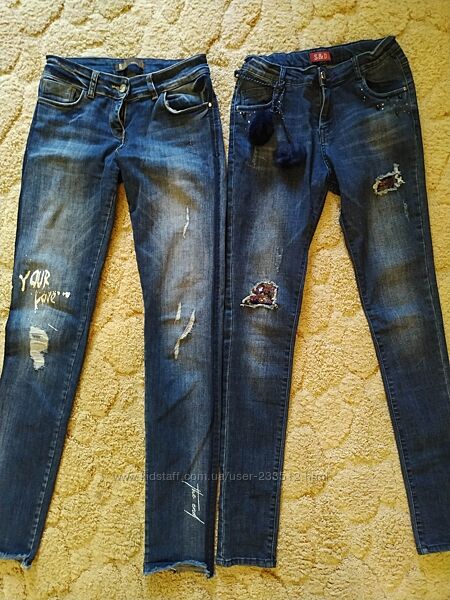 Фото 3. Синие джинсы с надписями рост 170см, носили при 164см. Длина 102, шаговый 81, талия максимально 41 (есть утяжка), бедра 43, ширина штанины внизу 14см .Джинса тянется отлично. Цена 150грн.