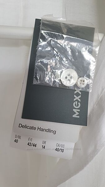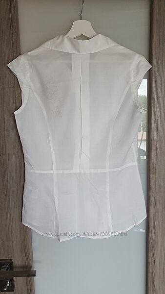 Проліт, брала для мами по хорошій знижці. Абсолютно нова і з усіма етикетками, напівпрозора, білого кольору, з делікатною аплікацією. розмір вказано 42-44 європейський (14 UK). загальна довжина - 67 см, ширина по спині під рукавами - 48 см (+ може бути допуск за рахунок складки тканини на спині). чудовий варіант під жакет за рахунок відсутності рукавів.