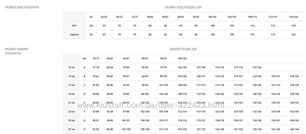 | Обхват под грудью | 75 , 80, 85, 90, 95 |