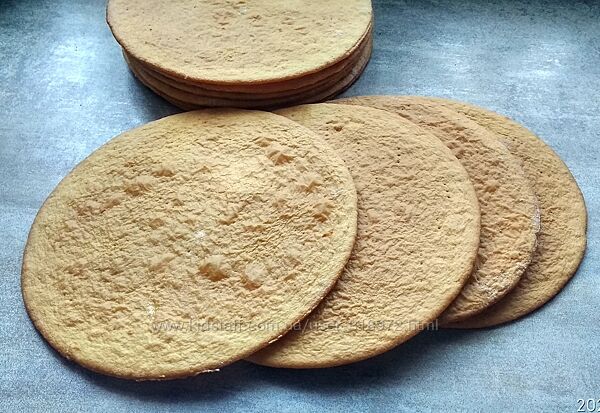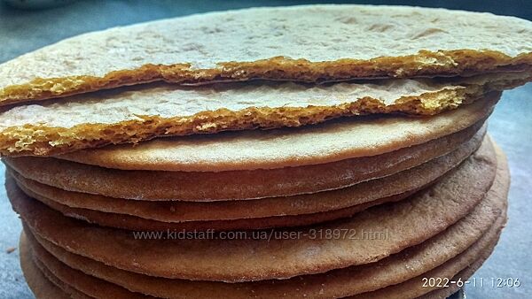 Коржі для торту Медовик. Домашні, з якісних продуктів.В набір входить 12 коржів d 21 см і крихта для обсипки.