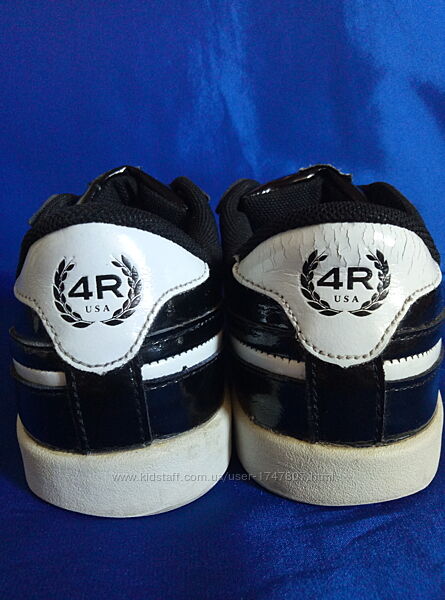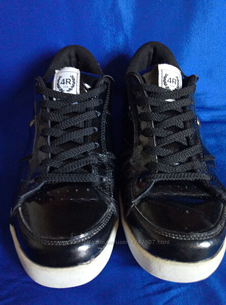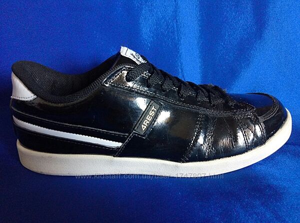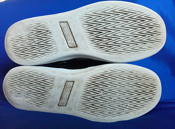 --Кросівки бренду 4Rest у дуже хорошому стані.--Без значного зносу верху та підошви. Верх ніде не відходить від підошви. Є заломи лакування від природного згину ступні. І на правому сзаду на білій вставці. Візуально не видно, оскільки матеріал із блиском. Підошва стерта в районі п´ят, але не критично. Усередині текстиль без зносу. Вимиті.