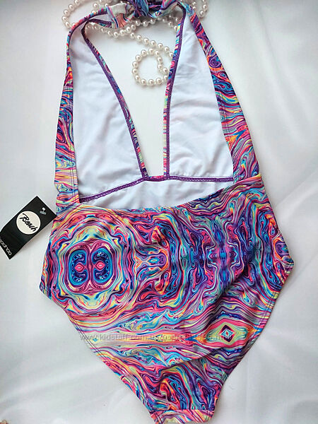 Купальник с глубоким вырезом декольте Nassau Boutique Marble Rainbow Boohoo. Очень интересная и соблазнительная модель. Красивый и оригинальный принт. Спереди полностью на подкладе. Размер UK10. Смотрите замеры на фото. Полуобхват бедер 37 тянется до 48см, талия 30-40см. Длина от шва завязки через шейку 66см. Сток с биркой. Отсутствует защитная пленка на ластовице. *** Оплата на карту Приватбанка. Доставка Новой почтой, Укрпочтой. Оплата за доставку - при получении. Возврата и обмена нет.