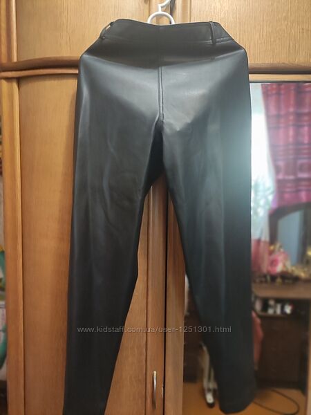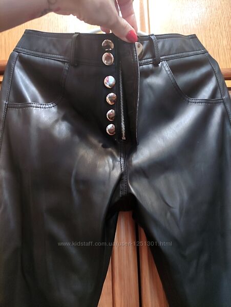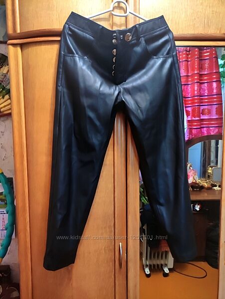 черные укороченные брюки из экокожи