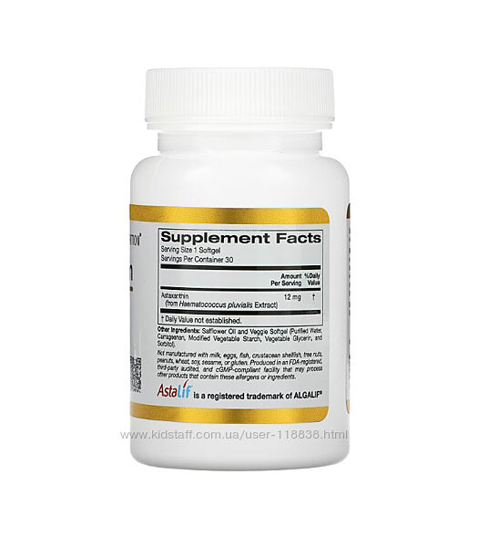 California Gold Nutrition, Астаксантин, 12 мг, 30 таблеток