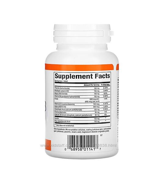 # Natural Factors, повний комплекс вітамінів групи В, 100 мг, 90 таблетокОПИС: