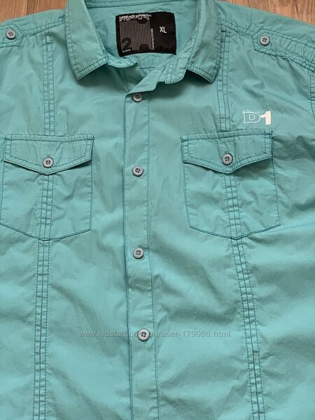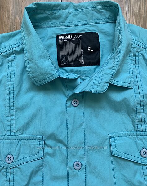Рубашка летняя, хлопок, цвет бирюзово голубой. Размер указан ХЛ, идёт на 50-52р. Цена 100 грн Состояние отличное, только на одном рукаве есть высветление маленькое, на фото показала, в глаза бросается. Замеры: ПОГ 60 см Длина 79 см Плечи 50 см Рукав 25 см + 15 см плечо