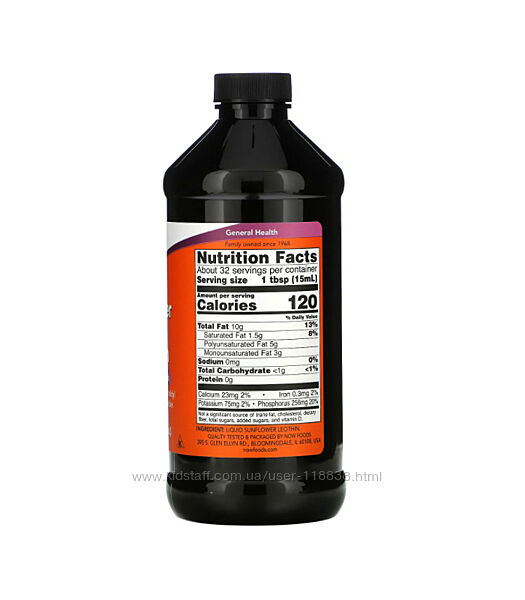 Подробное описание: NOW Foods, жидкий лецитин из подсолнечника, 473 мл
