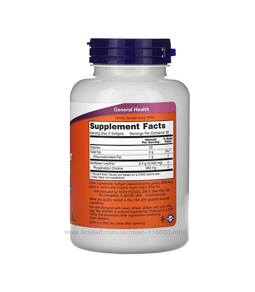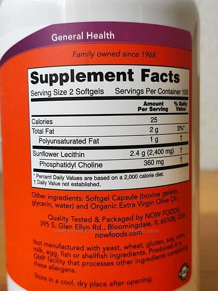 # NOW Foods, подсолнечный лецитин, 1200 мг, 100 капсул (фото 2,3) - 440 грн# NOW Foods, подсолнечный лецитин, 1200 мг, 200 капсул (фото 4,5) - 820 грн