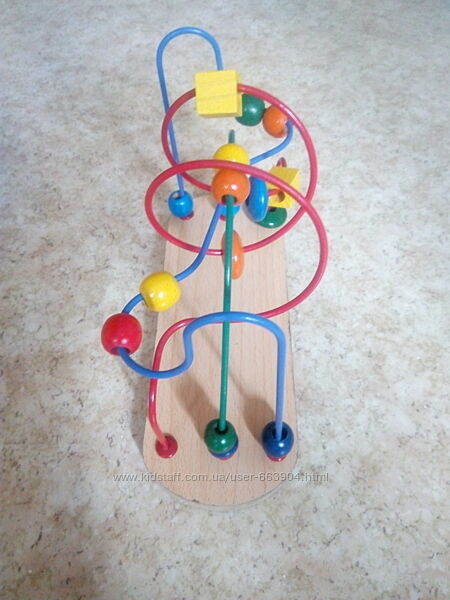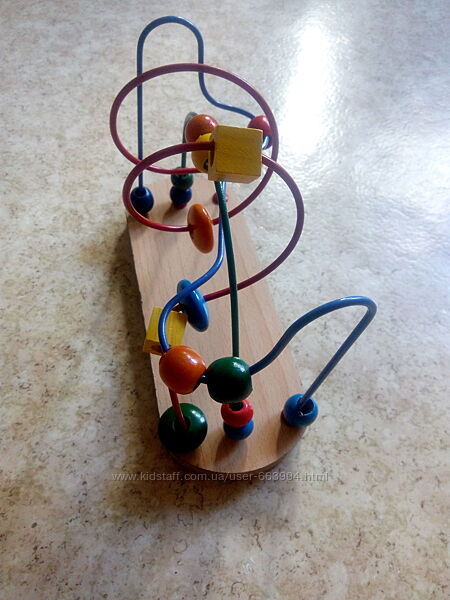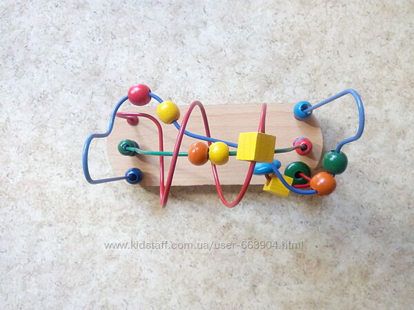 Развивающая игрушка-лабиринт станет замечательным подарком вашему ребёнку. Яркие краски деталей, крепкая основа, натуральные материалы - это лишь немногие достоинства этой модели лабиринта.Проводя разноцветные деревянные бусинки по лабиринту из толстой проволоки, ребёнок тренирует: