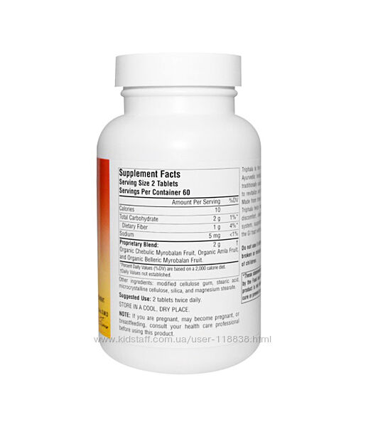 Трифала є найшанованішою з усіх трав´яних аюрведичних формул, яка зазвичай використовувалася протягом більш ніж 1,000 років щоб відновлювати і підтримувати здоров´я шлунково-кишкового тракту. Зроблена з трьох найпотужніших, але в той же час м´яких фруктів, трифала допомагає зменшити періодичний кишковий дискомфорт, очищує та зміцнює систему, підтримує регулярне випорожнення та насичує шлунково-кишковий тракт антиоксидантами.