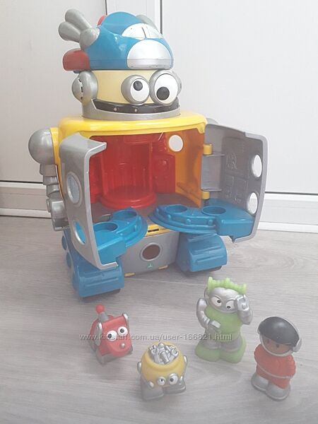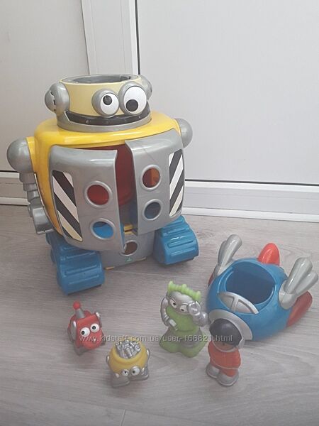 Ретро Робот музичний космічний та інопланетяни ELC Mothercare у хорошому стані. У наборі робот із зорельотом та 4 фігурки! Робот інтерактивний. можна потрапити всередину робота через голову, у голові при цьому натискаються важелі і видаються різні звуки. Голова робота обертається зі звуком і голосовим звучанням, при цьому очі обертаються і світиться шия почергово червоними вогниками. Коли приземляється зореліт, то з нього можна відразу провалитися в робота при натисканні на хвіст. Всі дверцята відчиняються і зачиняються. Робот підходить до всієї космічної серії цієї фірми. В наявності ще є Велика космічна станція.Другие объявления продавца