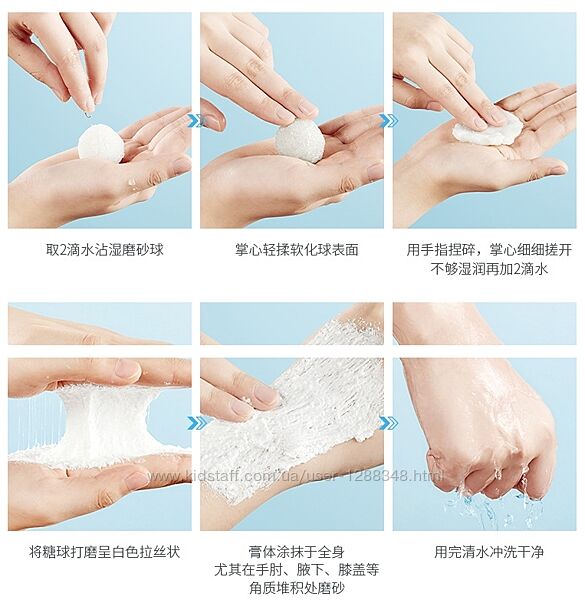 Способ применения: Взять один шарик скраба, смешать с небольшим количеством воды до вязкой, тянущейся массы. Нанести на проблемные участки и помассировать, подождать 5 минут, смыть теплой водой. Для небольших зон можно использовать половину или четверть шарика!
