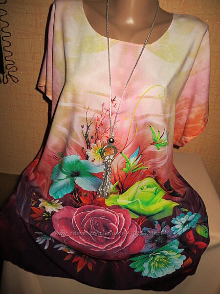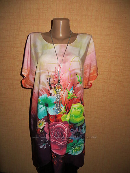 Платье-туника с цветочным принтом.Легкие,цветы обретают совершенно иные формы: легкие, воздушные тона с средним узором.Цветочный принт может стать прекрасным инструментом для коррекции фигуры,кто желает замаскировать лишние сантиметры.