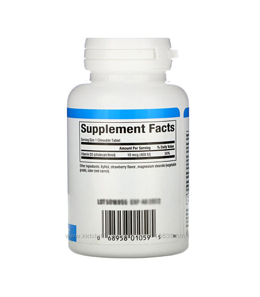 Подробное описание: Natural Factors, жувальний вітамін D3 для дітей, 400 МО, 100 таблеток