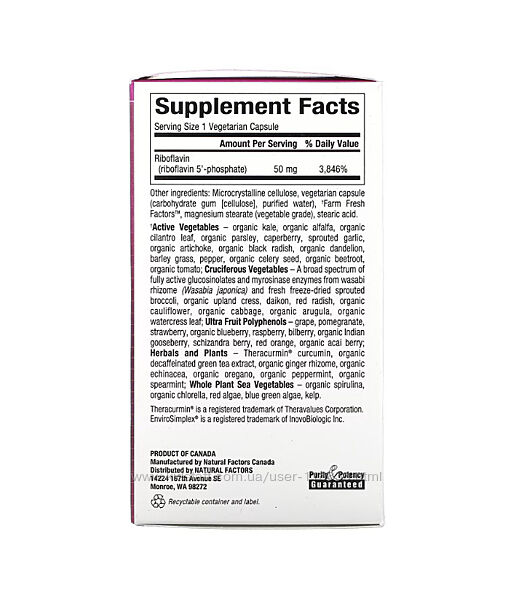 Подробное описание: Natural Factors, Вітамін В2, b2, рибофлавін 5-фосфат, 50 мг, 30 капсул