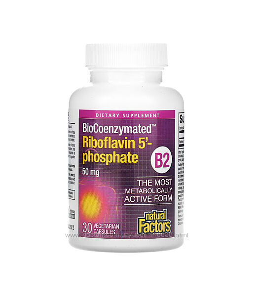 # Natural Factors, BioCoenzymated, B2, рибофлавін 5´-фосфат, 50 мг, 30 вегетаріанських капсулОПИС:
