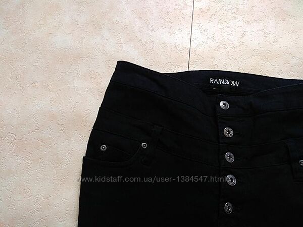 Подробное описание: Стильные черные джинсовые шорты бриджи с высокой талией Rainbow, 36 pазмер.