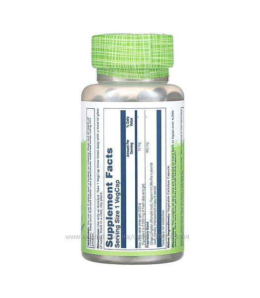 Запатентована суміш імбиру (Zingiber officinale) (корінь), м´яти перцевої (Mentha x piperita) (лист), петрушки (Petroselinum crispum) (надземна частина) = 440 мг