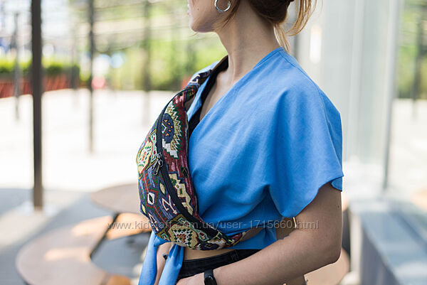 Сумка-бананка з натурального текстилю « ЦИТРА синя» ручної роботи в стилістиці етно.Від українського бренду Tashka.Ukraine