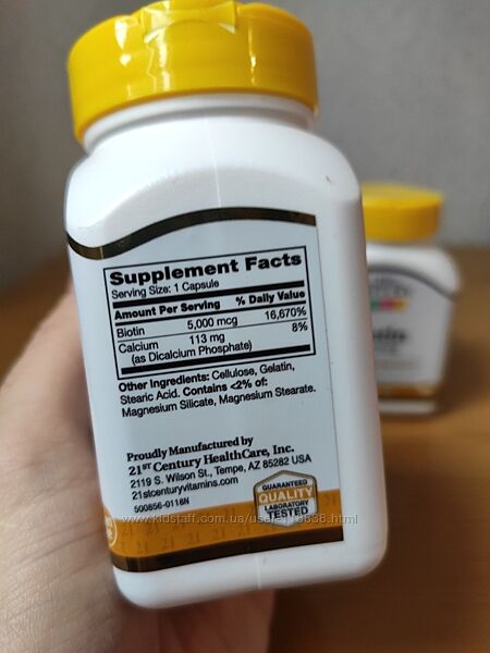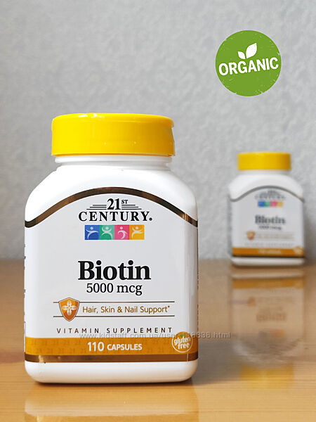 Подробное описание: 21st Century, биотин, 5000 мкг, Витамин В7, b7, 110 капсул