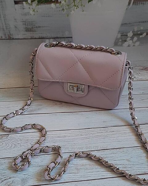 Подробное описание: кожаная сумка клатч с цепочкой Италия кроссбоди пудровая шанелька стильная