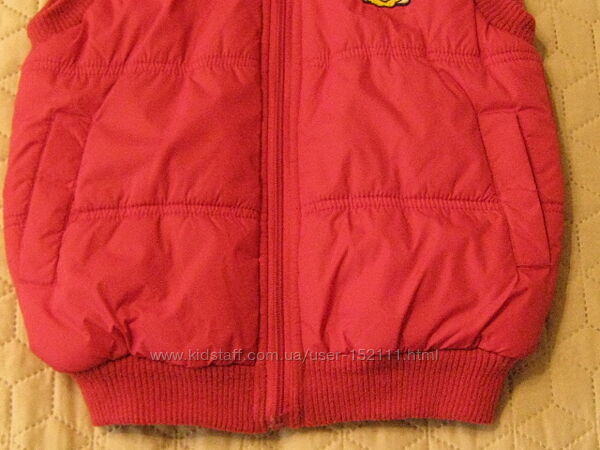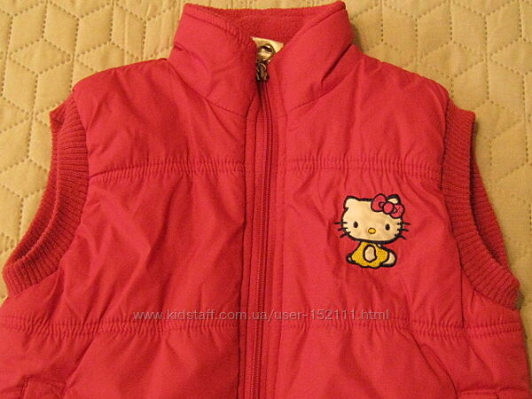 Жилетка детская "Китти". Размер 6 (122-128). Малинового цвета.Теплая на синтапоне и флисовой подкладке, воротник стойка без капюшона, пройма и них жилетки из трикотажа.