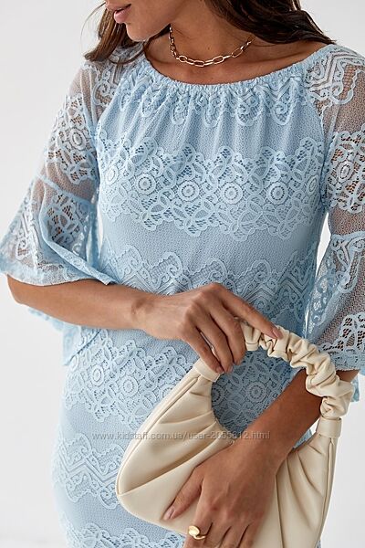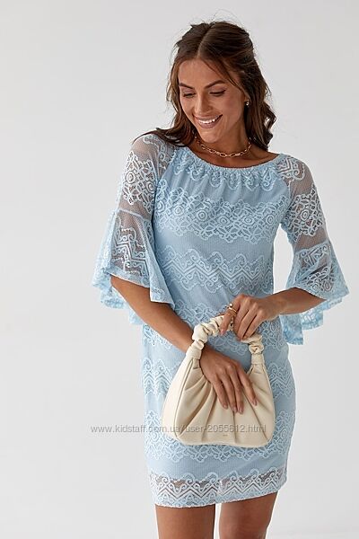 💙КРУЖЕВНА СУКНЯ МІНІ💛Ніжна сукня із мереживної еластичної тканини допоможе тобі створити романтичний образ. У цій моделі горловина кругла з гумкою, завдяки якій можна оголювати плечі. Сукня має рукава-кльош, та підкладкову тканину, приємну до тіла.