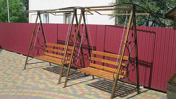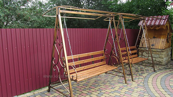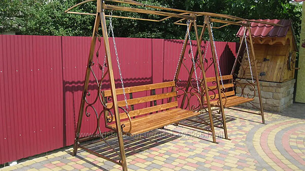 Кована гойдалка виготовлена із високоякісної профільної труби 50*30 + проф. труба 20*20 + проф.труба 15*15 з додаванням декоративних кованих елементів. Товщина стінки металу - 1.5мм.