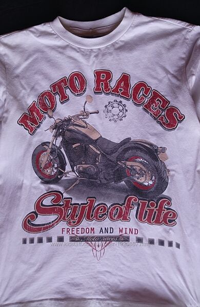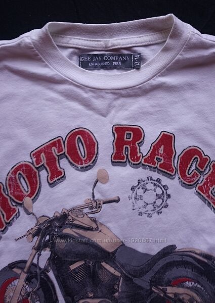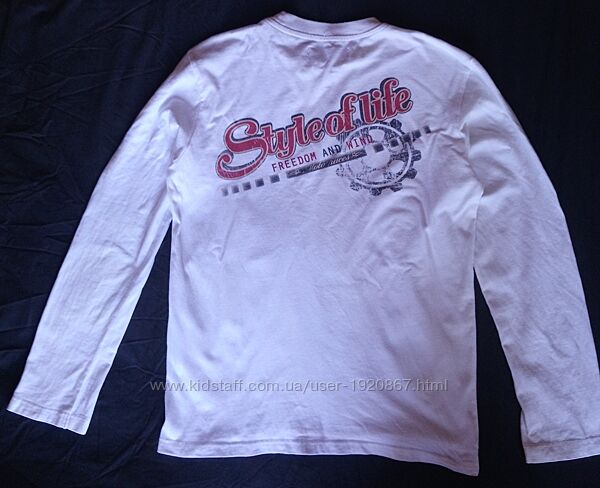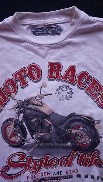 Футболка р.42, бренд Gee Jay. 100% коттон. Длинные рукава.Цвет белый, принт на груди и на спине.