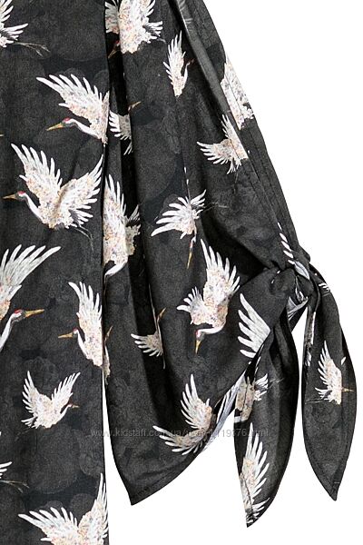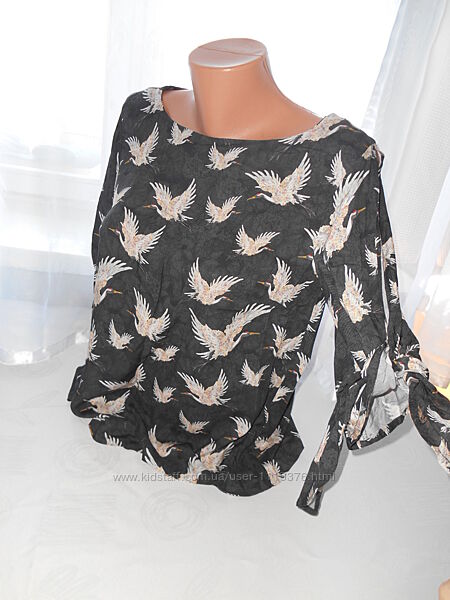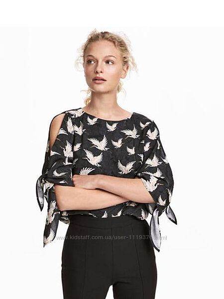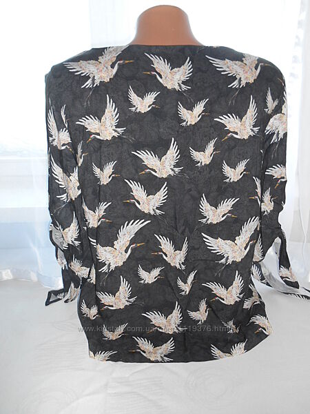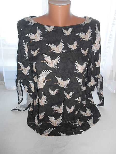Подробное описание: Блузка с завязками на рукавах принт птицы