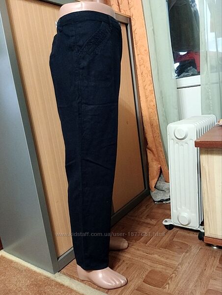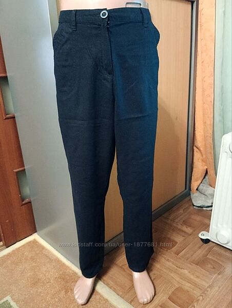Синие летние брюки, в составе лен, размер 16 - L - 50