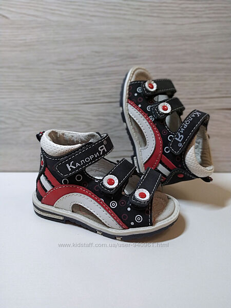 К Вашему вниманию, детские сандалики для самых маленьких мальчиков ТМ СALORIEУдобная модель на липучках позволяет одевать сандалики на ножку любой полноты, главное определиться с размером.