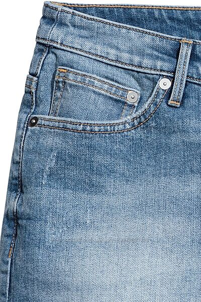 Короткі шорти з 5 кишенями з випраного еластичного деніму з потертими деталями. Звичайна талія, блискавка, короткі розрізи з боків і необроблені краї.Склад - Бавовна 99%, еластан 1%