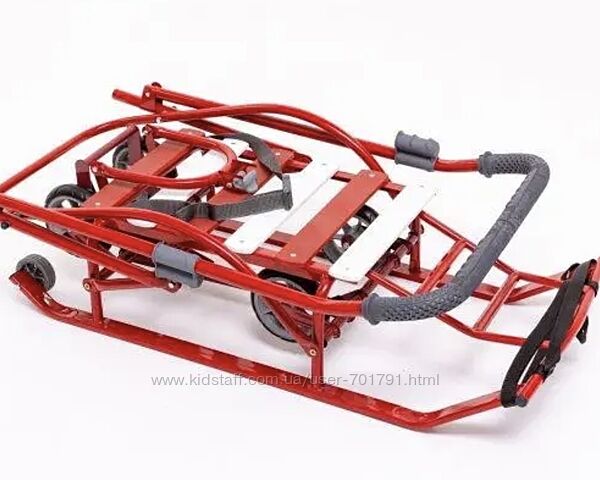 подовжена базаступінчаста підніжкапоперечна рейкаручка два положенняремінь безпекивантажопідйомність санок: не 25кгобгумовані колеса на полозах для зручного транспортування