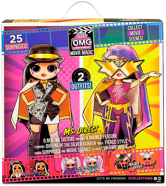 Вас ждет что-то действительно невероятное! Красотки L.O.L. представляют новую серию "O.M.G. Movie Magic" и приглашают Вас на проcmотр ретро-фильмов.В серию входит 4 куколки, каждая из которых может перевоплощаться в двух героев фильмов разных жанров: романтических, фантастики, ужасов, триллеров или фильмов о супергероях. Выбирайте героиню себе по душе или соберите всю коллекцию!